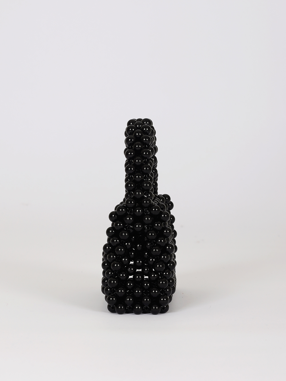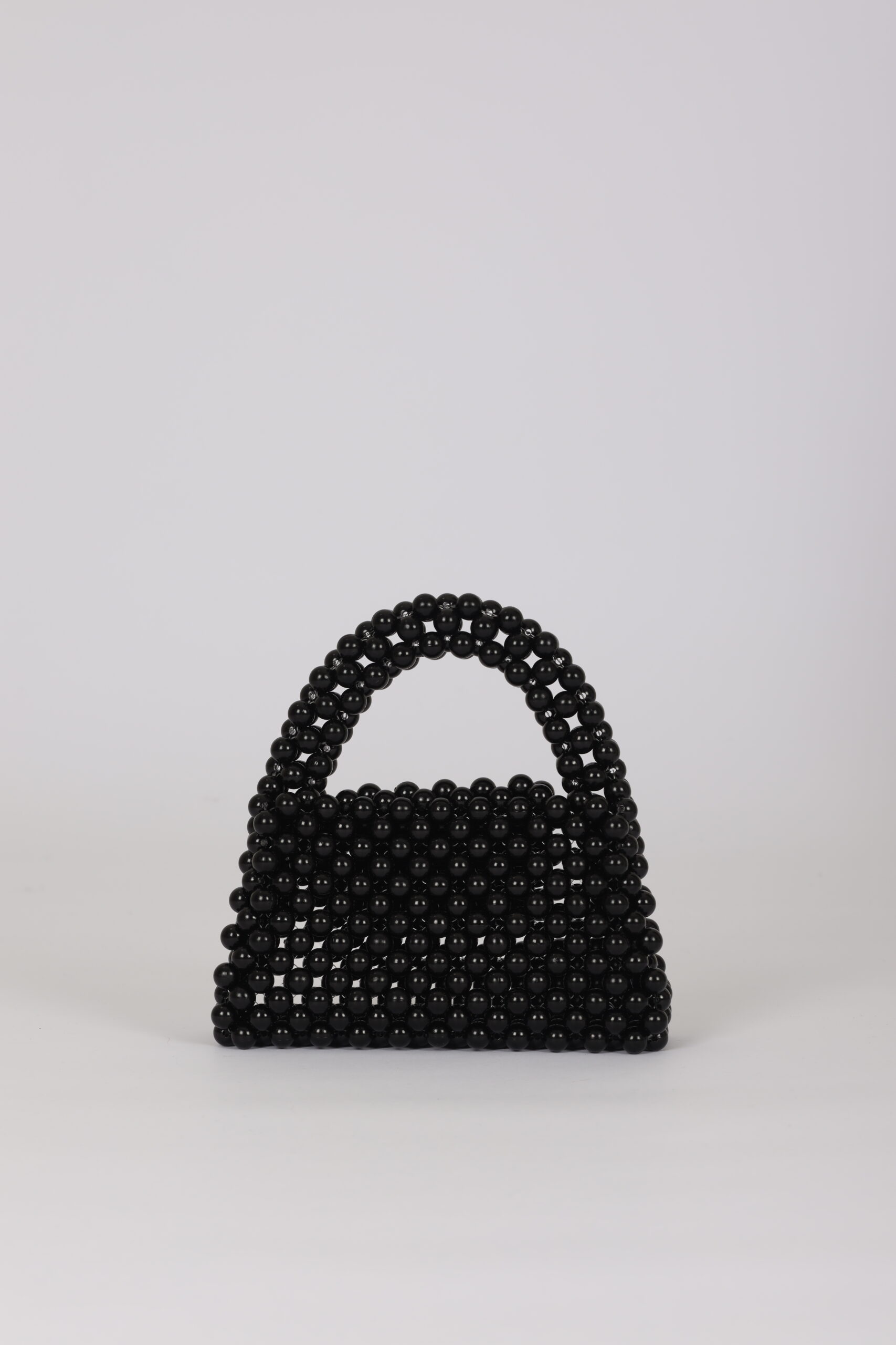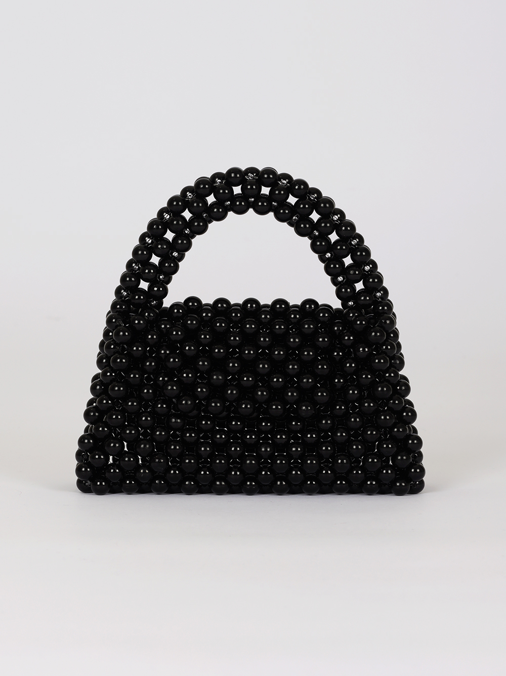 The Irisa bag is a bold statement piece, handcrafted from acrylic beads. Its structured shape, curved top handle, and seamless beaded flap make it both elegant and eye-catching.